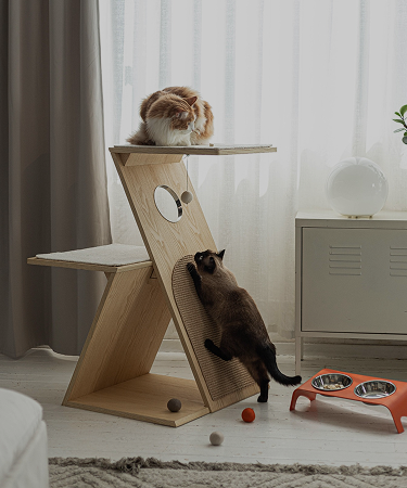 We prioritise premium, sustainable materials designed for longevity. The Curvo feeder and Jazz climbing tree are crafted from responsibly sourced solid wood, ensuring durability and environmental consideration. The Obelisk post features a durable sisal wrap for satisfying scratching, while the Domi bed utilises a breathable lattice structure with a plush inner cushion.